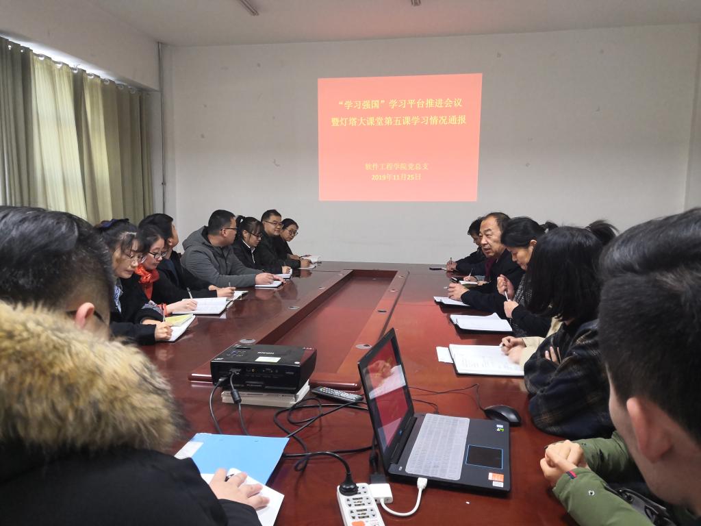2019月11月25日,软件工程学院学生党支部组织召开“学习强国”平台推广使用再推进会议。